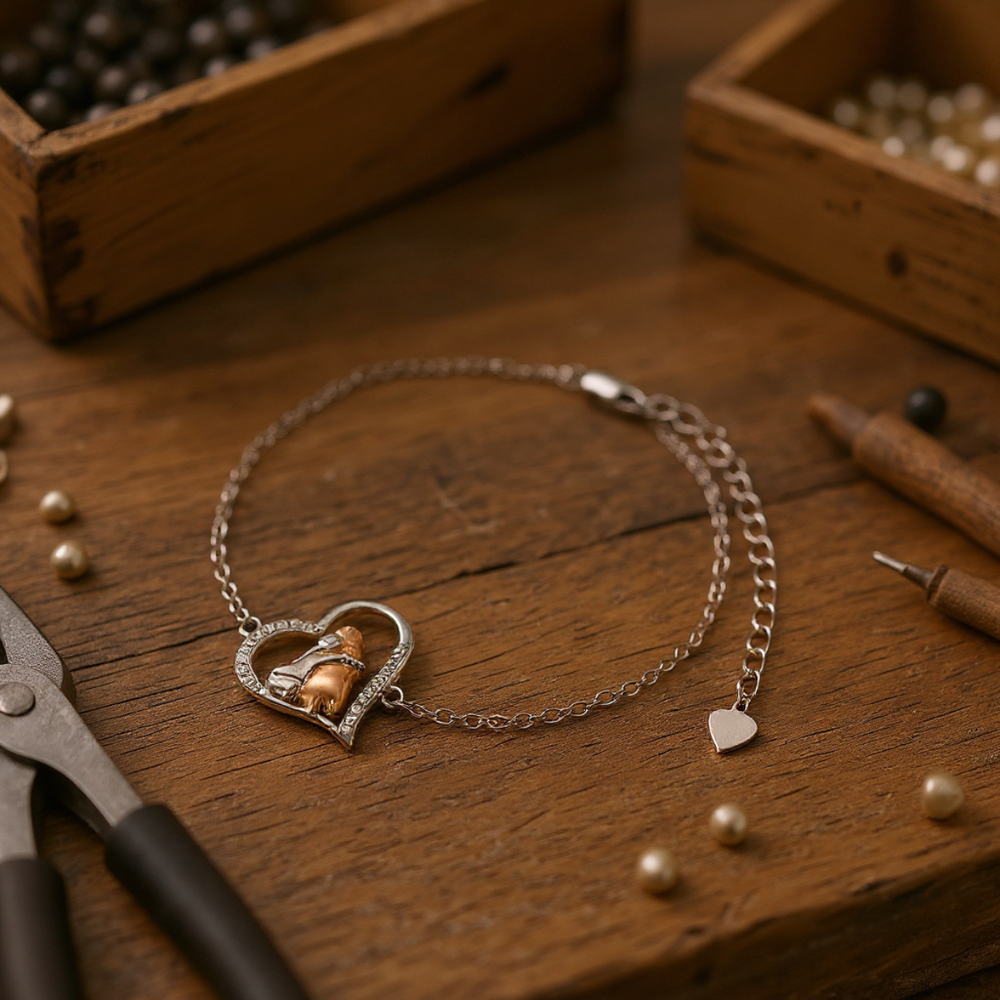 Limited Edition Pure Silver Dog Paw and Bone Charms Bracelet